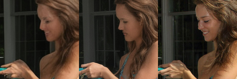 One example of lowered Controlnet strength, increased number of steps and higher denoise value (the default on the left, with lower Controlnet strength in the middle, ground truth on the right) :